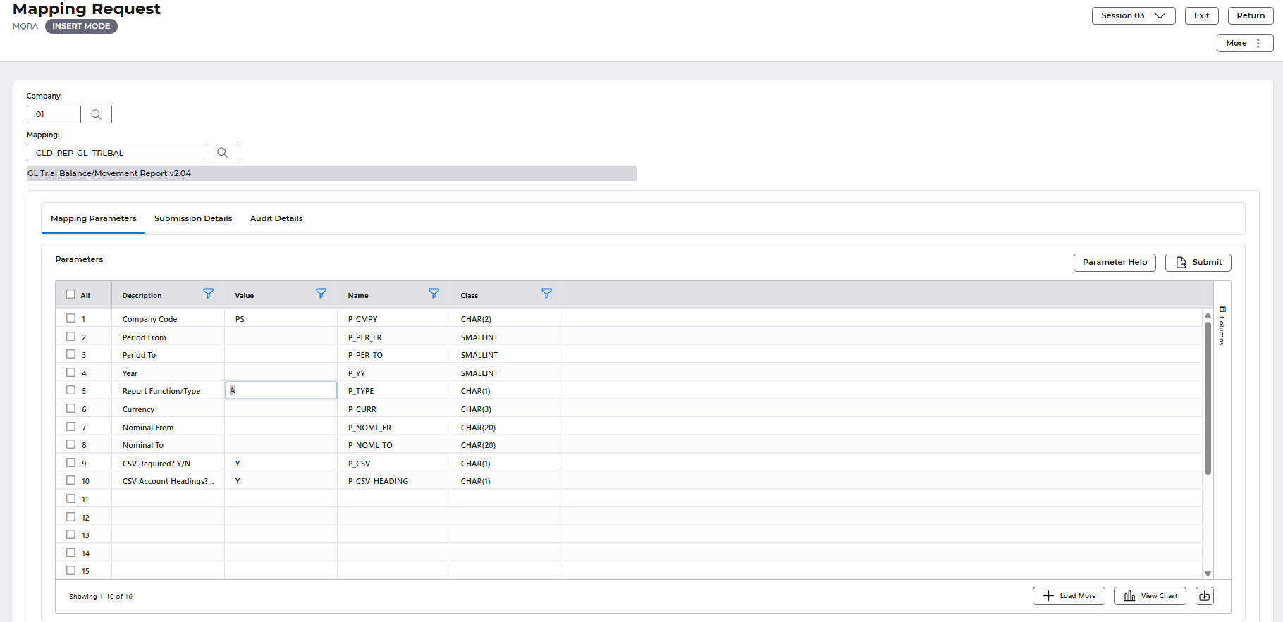 A default layout will also be used, this will display a list of balance information. There are several Layout codes to use within Financials. You can use the PROMPT action to retrieve a more appropriate code if necessary.