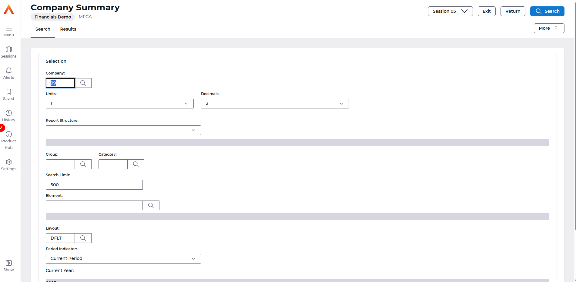 Simply Selecting Search button on the selection screen will display a full company summary. Entering other values into the selections will filter your enquiry to the detail required.