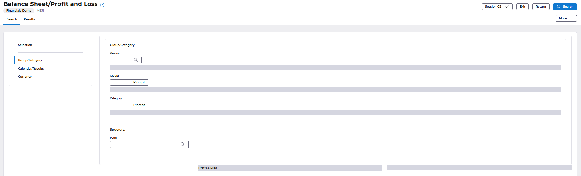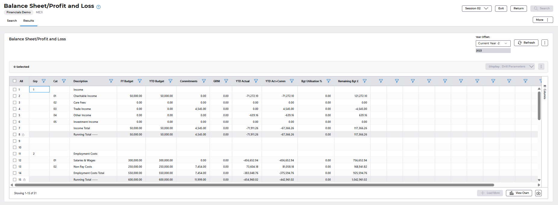 Location: Main Menu > General Ledger > GL Enquiries > Profit and Loss