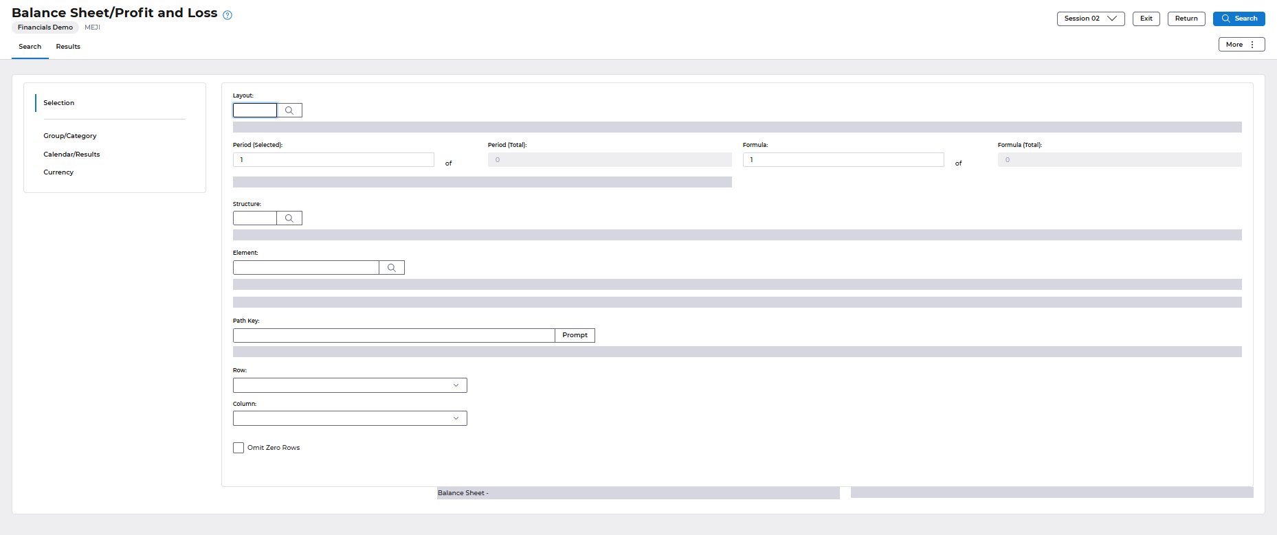The output of your Balance Sheet enquiry is dependant on the criteria you provide in the selection screen.