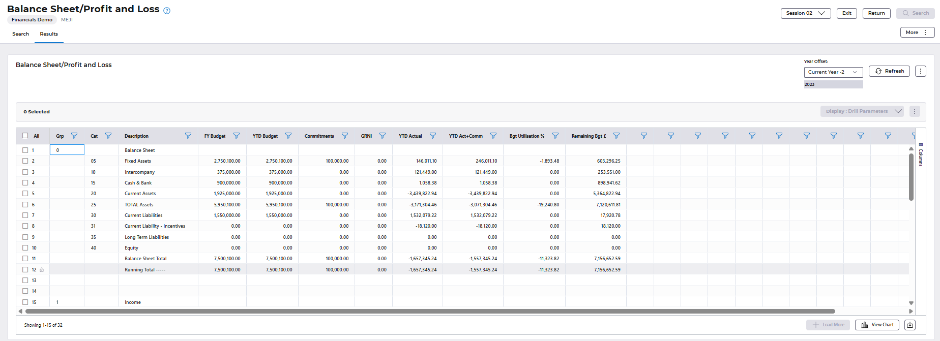 Location: Main Menu > General Ledger > GL Enquiries > Balance Sheet
