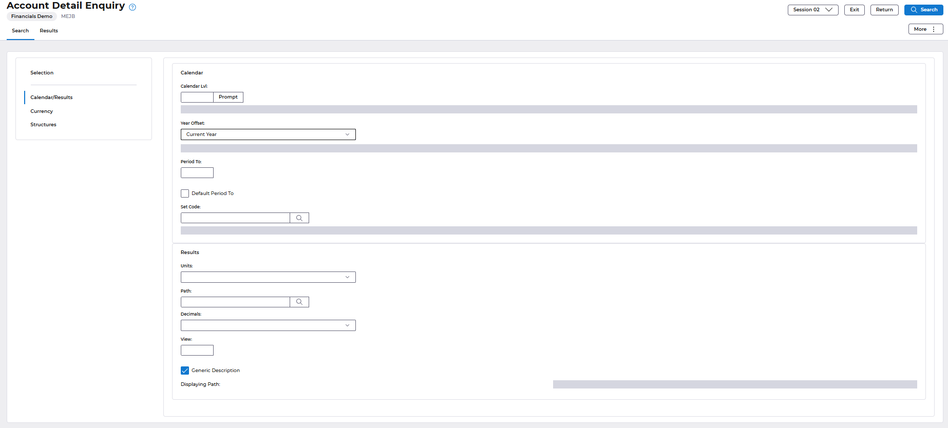 Location: Main Menu > General Ledger > GL Enquiries > Account Details