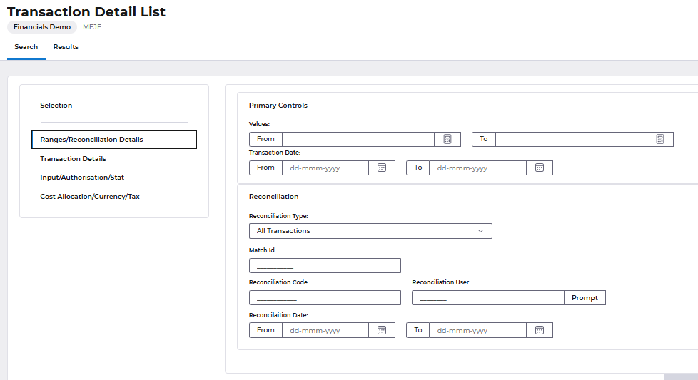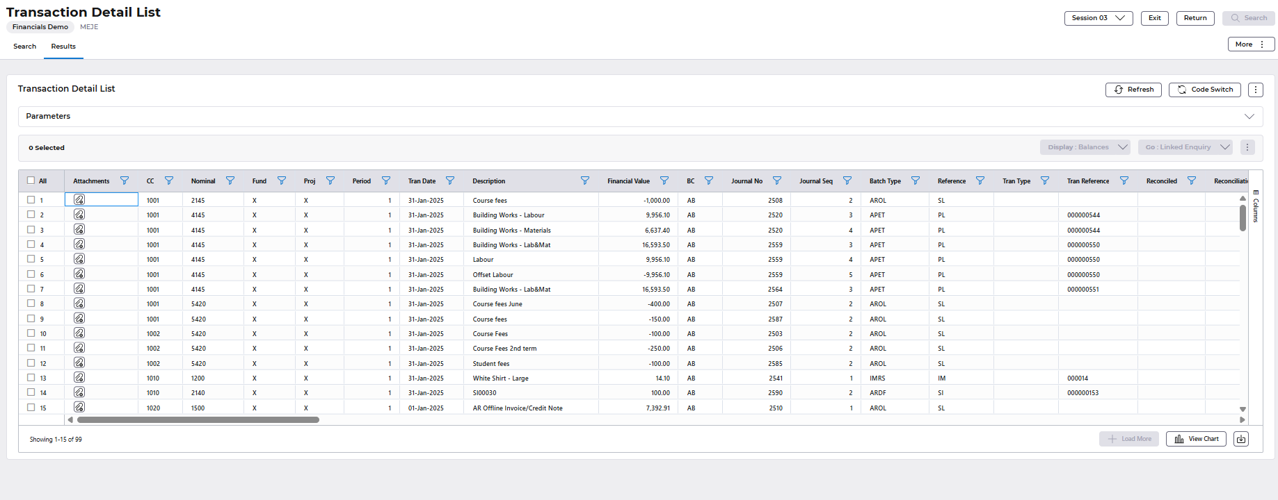 Location: Main Menu > General Ledger > GL Enquiries > Transactions by Account Code