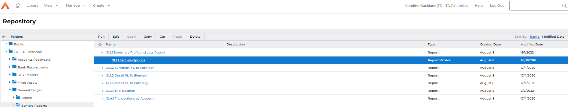 GL1.1 Summary Profit and Loss Report - Ad hoc view report