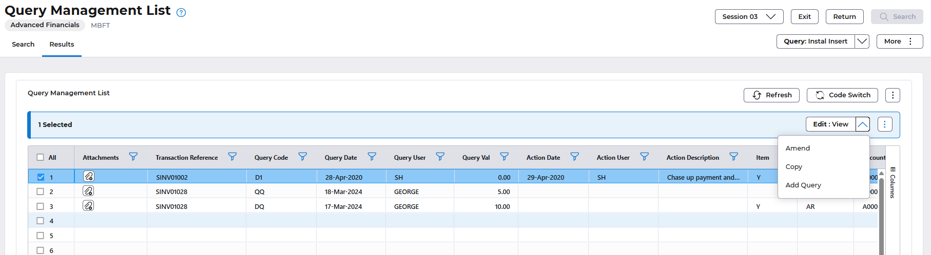 Query Management allows the you to record queries and disputes against transactions at transaction and/or item level.