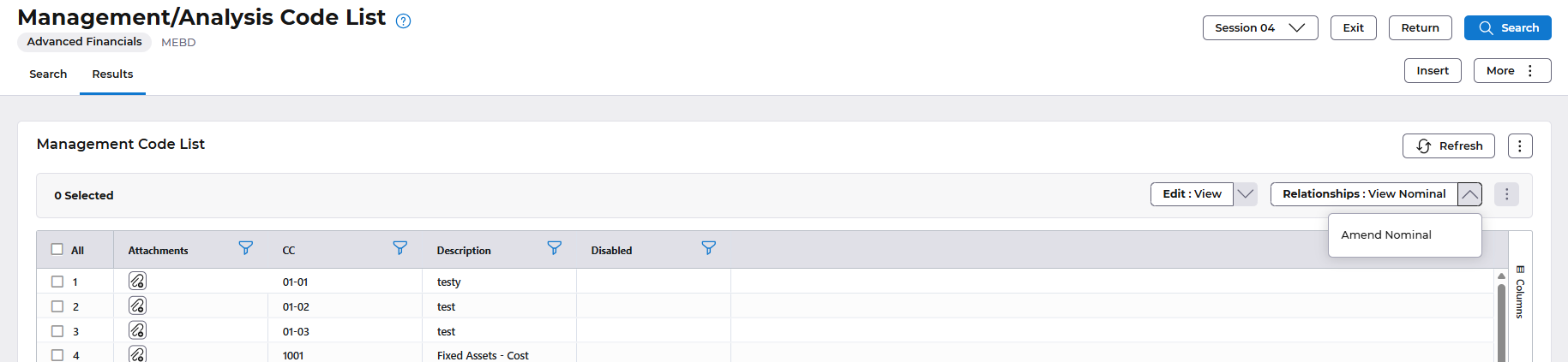 You can create relationships by accessing the nominal code, or management code. This section looks at nominal code.