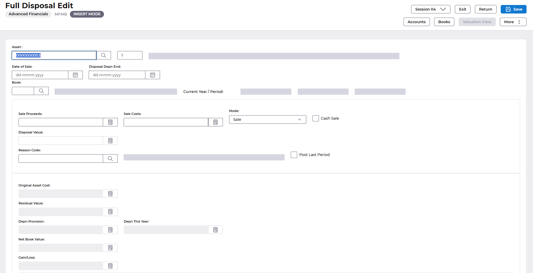 Fixed Assets enables disposals to be performed for a whole asset, or for part of an asset. The disposals are distinguished by calling them Full Disposals (FD) or Partial Disposals (PD) respectively.