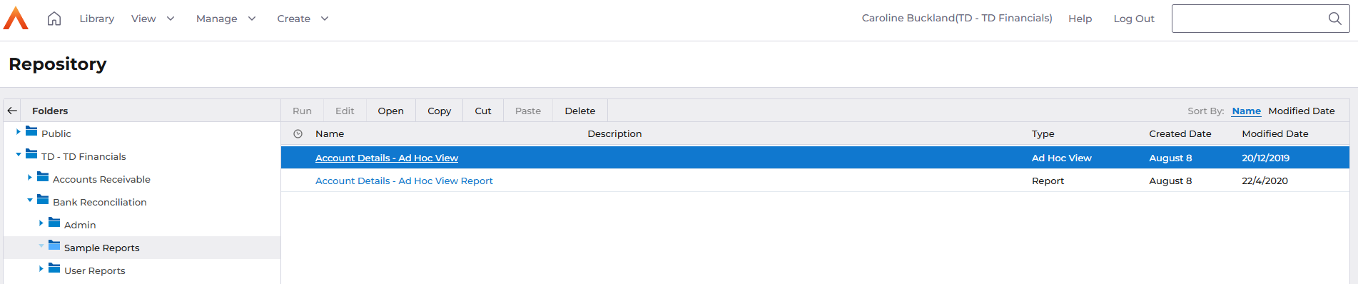 Account Details - Ad Hoc View Report
