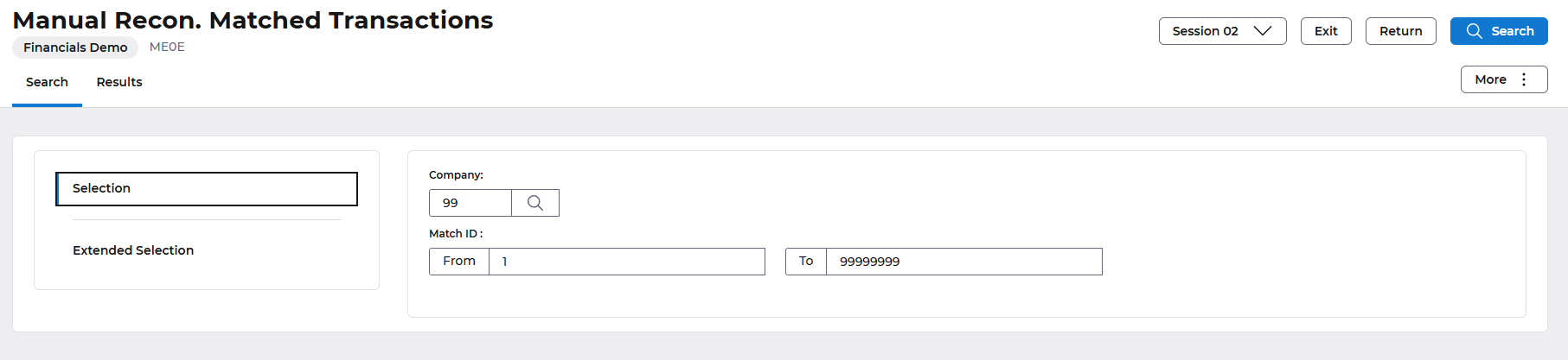 Match ID From Optional field used to limit the number of transactions listed. Match ID is a number assigned to reconciled transactions. This number is constant for transactions that have been reconciled together.