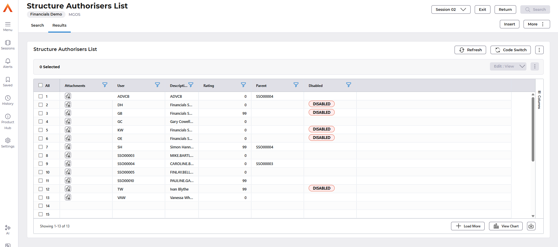All Proxy Users (Users who are able to authorise on behalf of others e.g. when they are on annual leave), will be added in here as part of your company build. To add new users you can Insert them from this page. Any users on the same rating can authorise on behalf of each other, or a parent can added to authorise on behalf a user.
