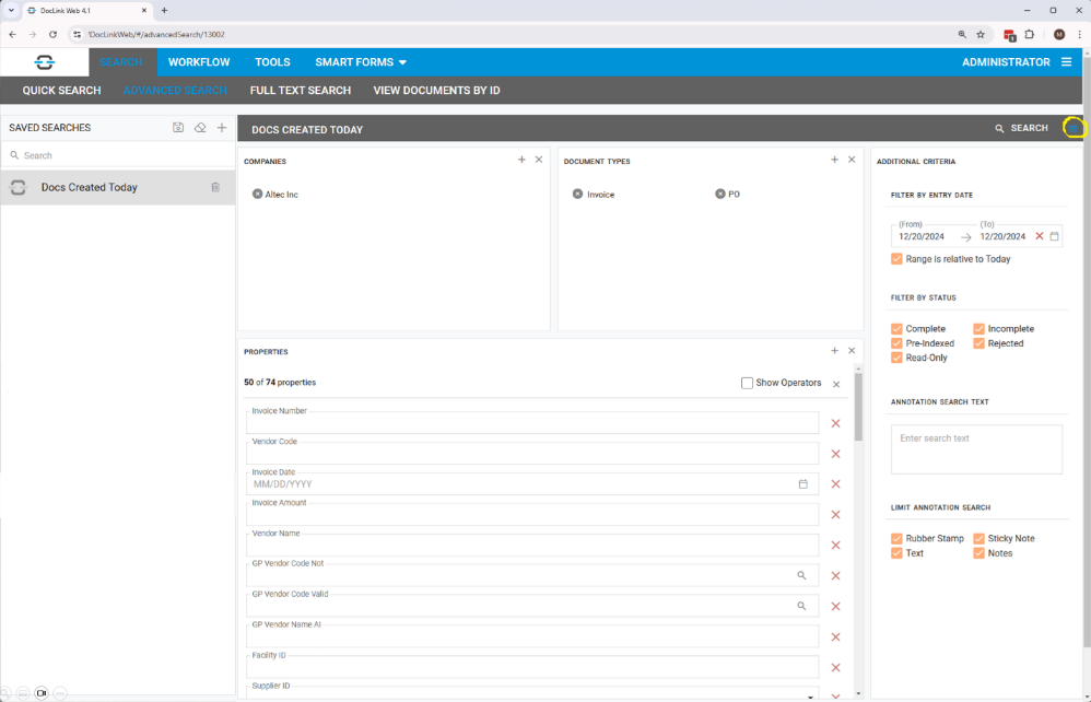 The DocLink administrator can now create a new ‘rejected’ OCR document type. If a document is imported from Smart Capture into DocLink without a required property or with a document type mismatch, the document will be indexed as the new rejected OCR document type.