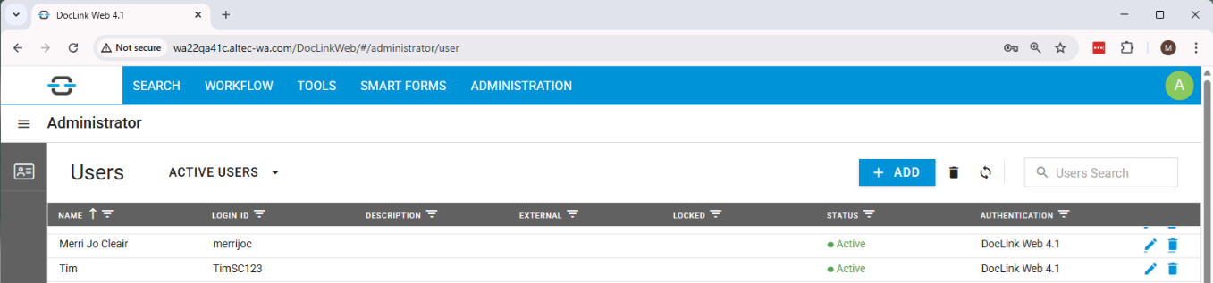 DocLink administrators can now create and manage users from within DocLink Web. Functionality is accessed from the Administration menu option and includes: